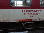 A second class passenger car of class 40 (type "Bm") with pseronal number 51 52 20 40 041-7 standing on central railway station Plovdiv in composition of Regional train from Sofia.