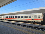 A second class Intercity passenger car of class 97, type "Bpmbz" at central railway station Plovdiv in composition of test train.