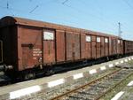 Some two-axle covered freight cars type Gbs at the station of Kazanlak. 5 April 2005