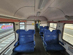 An interior in a second class passenger car of class 45 type "Byuu" at central railway station Plovdiv in composition of Regional train from Karlovo.