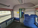 An interior in a second class passeger car of class 45, type "Byz" standing at central railway station Sofia in composition of an attraction train.