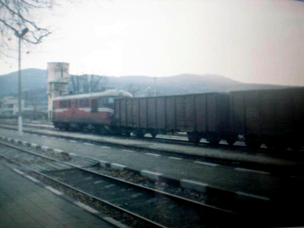 06082-2 (home depot Dimitrovgrad) on railway station Panagurishte with freight train to Plovdiv.The locomotive now is restored and damaged in depot of Plovdiv and with this photo taken in 1998 year , I want to remind about the mashine.