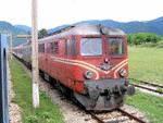 BDZ - Bulgaria Due to (planned?) engineering works on the overhead line, the express trains Sofia-Burgas running through Karlovo had to be diesel hauled over a section. Due to waiting for for the train on the photo (diesel 06 094 hauls an electric locomotive class 46.2 and a lot of coaches) and the low speed when diesel-hauled the delay at Sofia was 1.5 hours and we missed our connection to Beograd... I think this was a rare occasion to see freight class 06 hauling Intercity passenger trains! Klisura(?), 31-05-2007 Digital photo by Marco van Uden |
