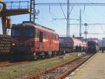 06114-3 on central railway station Sofia with freight train.