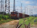 06114-3 on railway station Stara Zagora with freight train.