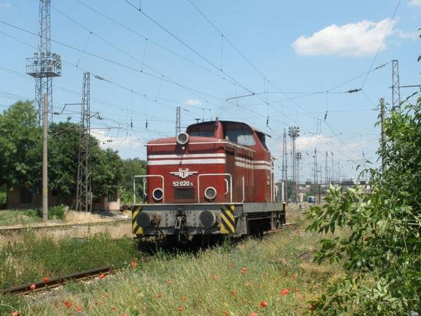 52020-5 (home depot Plovdiv) on railway station Filipovo , shunting with freight cars.