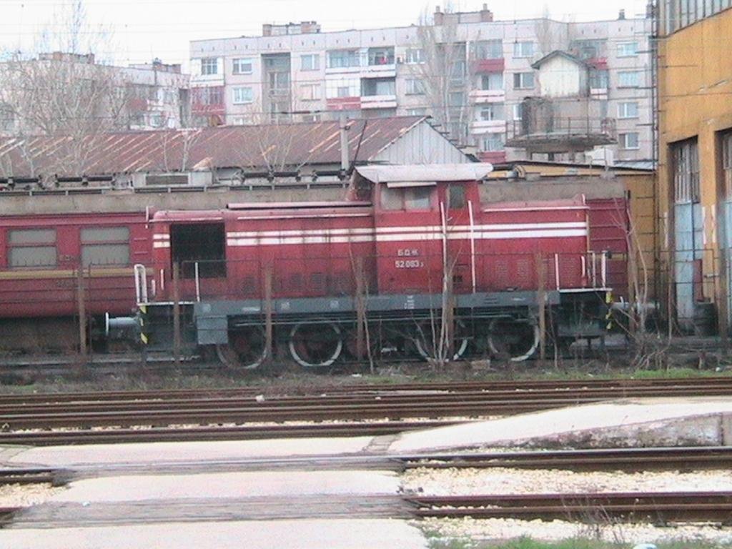 52083-3 on central railway station Sofia , after shunting with passenger cars.