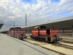 52241-7 on central railway station Sofia shunting with composition of the international train with number EC 383 Euro City from Moscow.