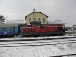 BDZ diesel locomotive class 55.064 at railway station Valchi dol , 26.02.2011