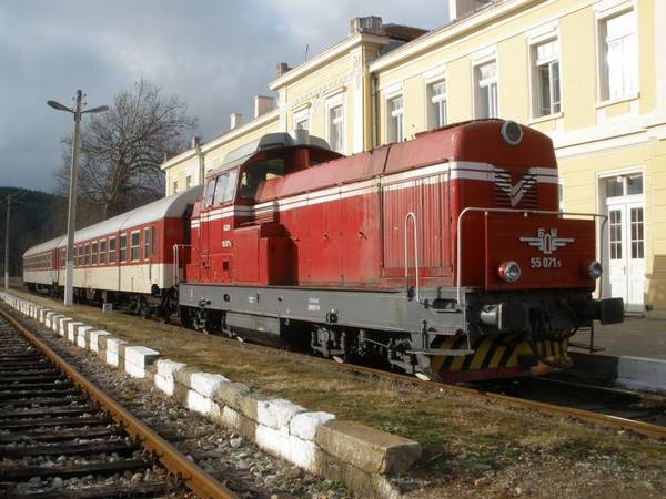 55071-5 on railway station Kiustendil with local train from Giueshevo.