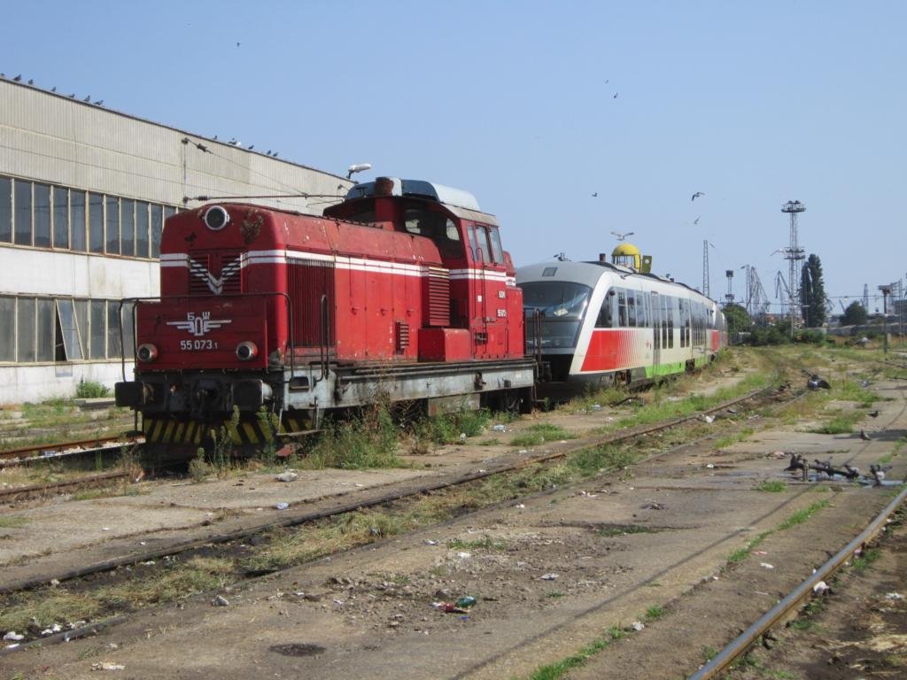 A 2 locomotives of class 55-00 - 55071-5 of BDZ and 55270-3 of "Port Rail" standing in depot Plovdiv.