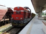 55129-1 at central railway station Stara Zagora with work train.