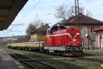 55137-4 shunting on railway station Dimitrovgrad with freight cars.