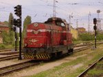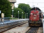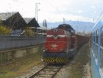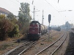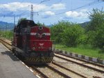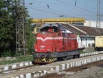 55140-8 shunting on railway station Mezdra with passenger cars.