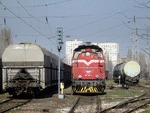 55141-6 on railway station Sofia sever (the North railway station of Sofia) with freight train.