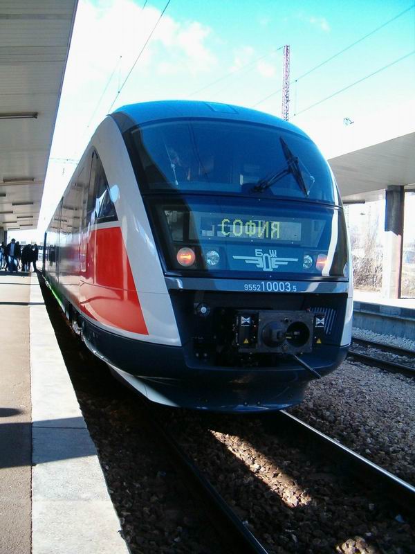 The new DMU DESIRO 10003-5+10004-3 on central railway station Plovdiv is using the lokal train to Dimitrovgrad. Digital photo Veselin Malinov, e-mail: veso_bog@abv.bg |