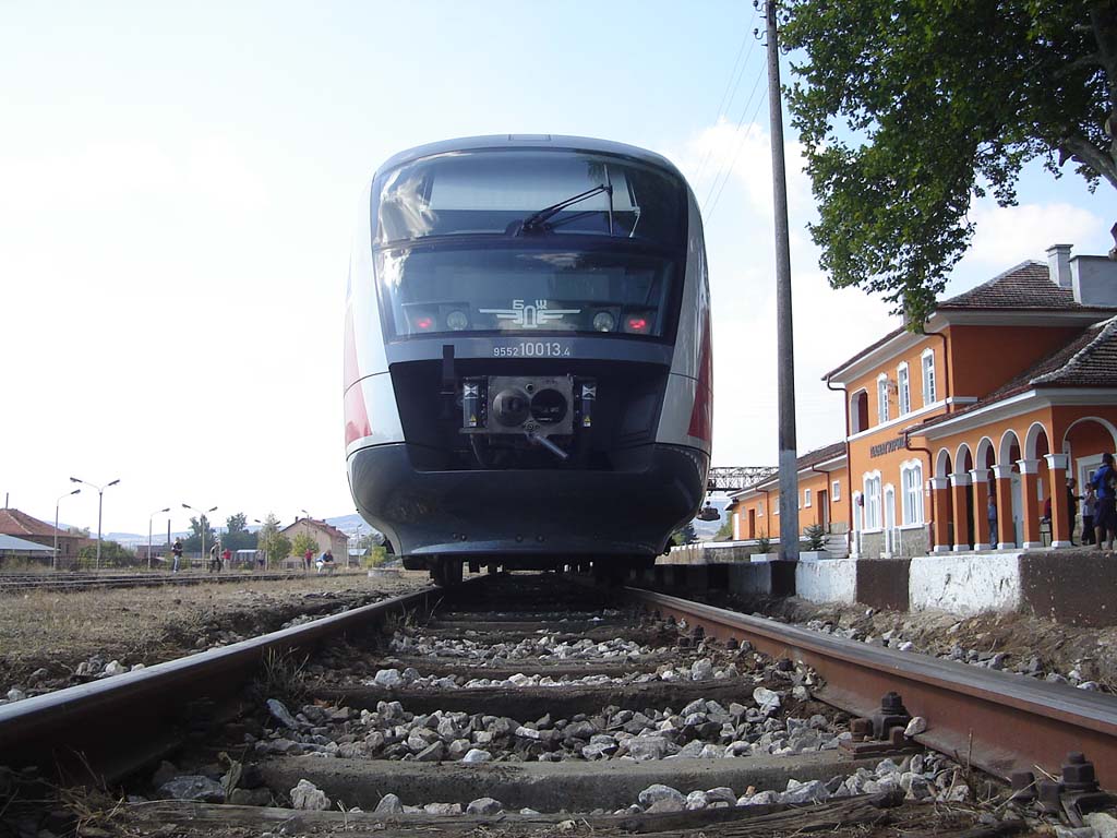 A new DMU DESIRO 10013-4+10014-2 in railway station Panagiurishte. Digital photo Veselin Malinov, e-mail: veso_bog@abv.bg |