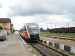 A DMU DESIRO standing on railway station Svishtov , using a local train from Levski.