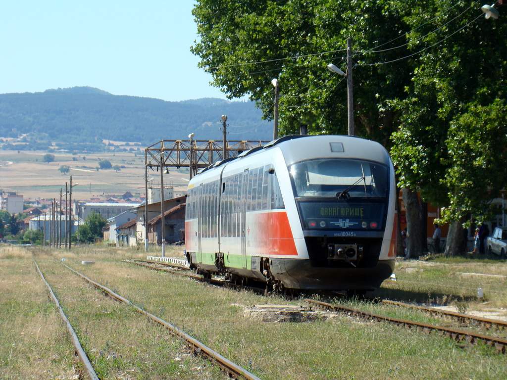 10045-6+10046-4 on railway station Giueshevo , using a Suburban train from Kiustendil.