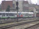 BDZ DMUs "Desiro" departing from Station Sofia as a fast train to Kjustendil.