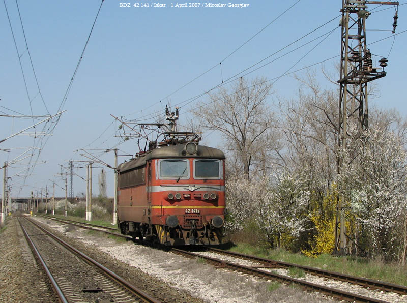 Locomotive 42 141 is on its way to the Iskar station where it will be coupled to a freight train. 1 April 2007