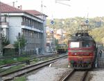 43-531 at Tryavna station waiting for the fast train Plovdiv-Shumen to free the track before continuing towards Stara Zagora. The freight train is pulled by 2 locomotives (second one is series 44/45) and consists entirely of transit (non-Bulgarian) cars.