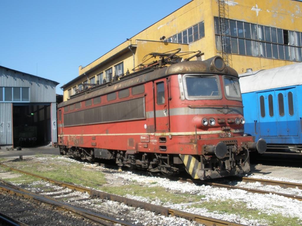 43542-0 near railway station Pazardjik with freight train.