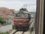 BDZ The electric locomotive 44.074-3 (home depot Sofia) at railway station Pazardjik with fast train Varna (Burgas) - Plovdiv - Sofia BV 8614