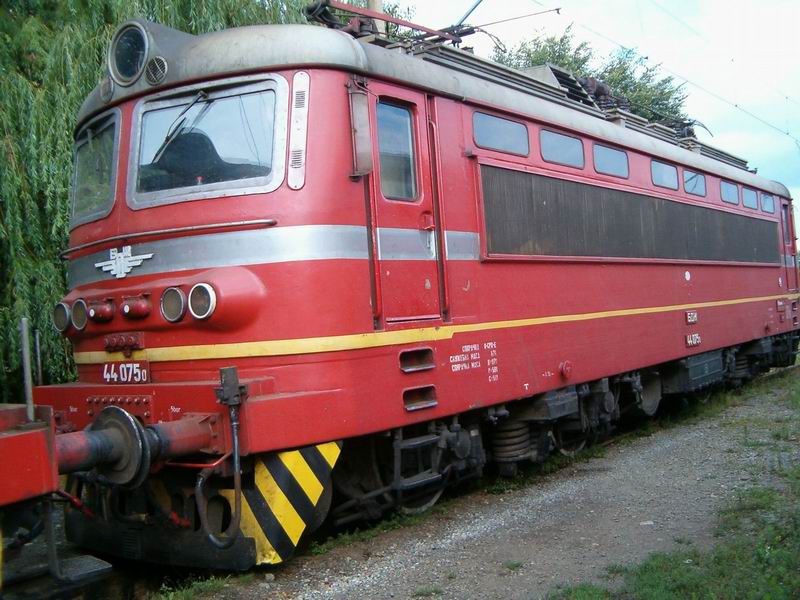 A photo of BDZ 44-075-0 (home depot Sofia) in the late afternoon of 6 April 2004. The locomotive is at one end of a freight train in the railway station Iskar in Sofia. It was probably used to attach some wagons to the train because just after the photo was taken, the machine was uncoupled from the train, changed tracks and went away.