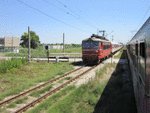 BDZ The electric locomotive 44.082-6 (home depot Plovdiv) with Express Diana UBV 8604 Iambol - Stara Zagora - Plovdiv - Sofia pass by railway station Orizovo