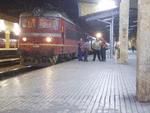 44088-3 on central railway station Plovdiv is ready to pull night fast train to Varna.Tha last passenger car in conposition have direction Plovdiv - Ruse.