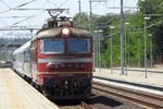 BDZ Electric locomotive 44.094.1 (home depot Stara Zagora) with freight train pass by railway station Proslav (Plovdiv)