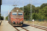 BDZ fast train 2654 served by electric locomotive class 44.125 from Varna to Pleven via G.Oriahovica passes the railway station Topoli, 09.04.2010.