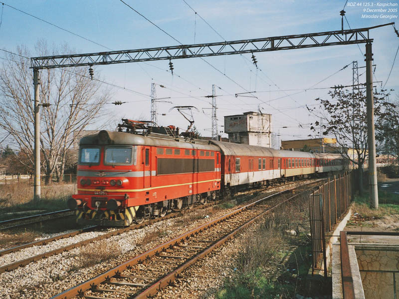 Locomotive 44 125.3 leaves Kaspichan with fast train 2610 (Varna - Gorna Oryahovitsa - Sofia). 9 December 2005