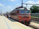 44155 at railway station Dimitrovgrad central with fast train with number 8601 from Sofia to Varna via Plovdiv.