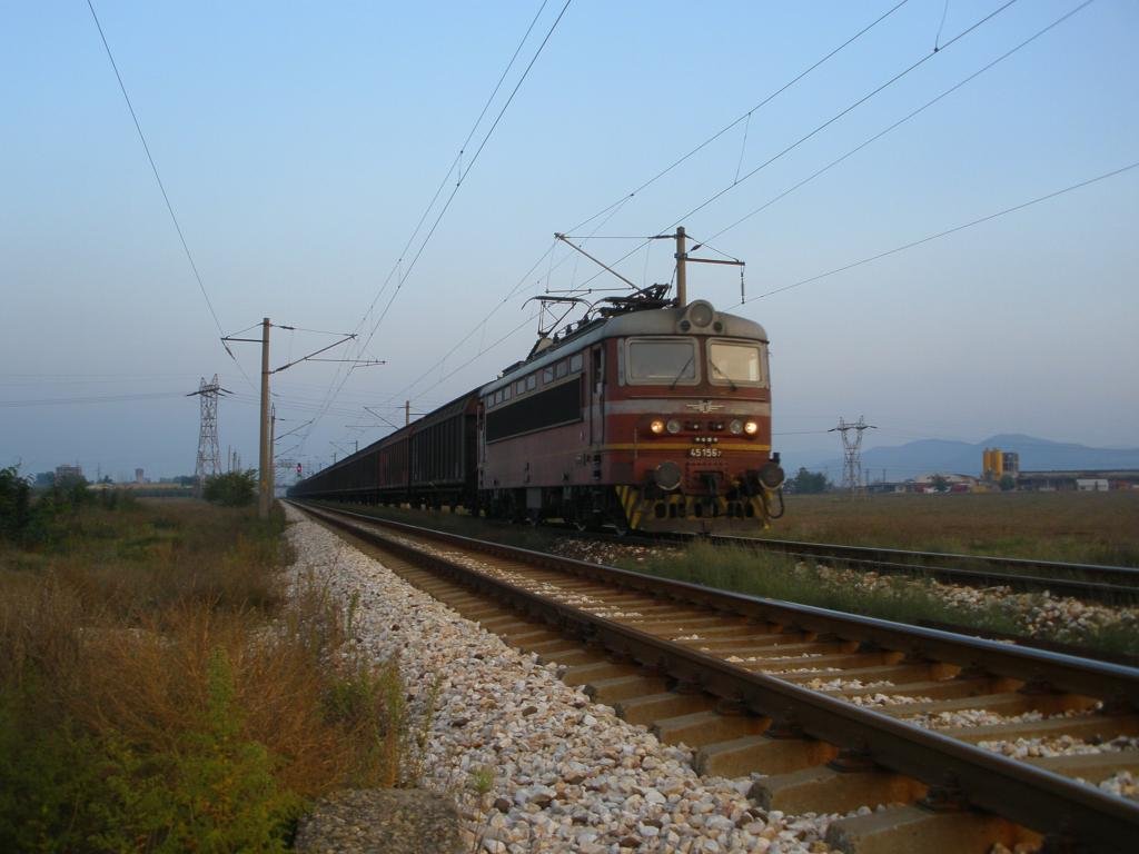 45156-7 near railway station Pazardjik with freight train to Sofia.
