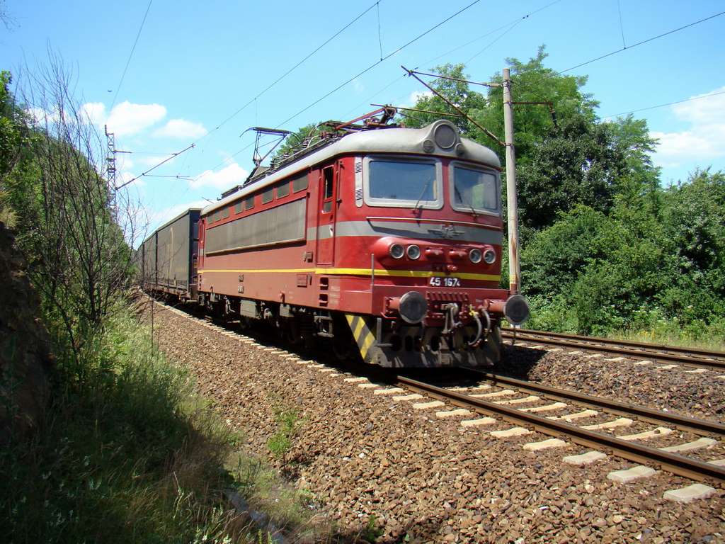 45167-4 (home depot Plovdiv) on railway station Septemvri with freight train to Sofia.