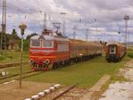 Locomotive 45 182 is about to enter the station of Voluyak with a freight train from Dragoman. The elevated track in the background is the line from Voluyak to Razmenna and Pernik. 28 April 2007