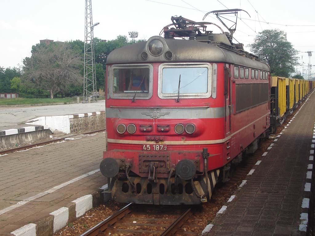 45187-2 on railway station Stamboliiski with freight train from Sofia.