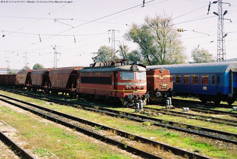 BDZ 45 193 and 55 150 with freight train at station Mezdra, 10.10.2004