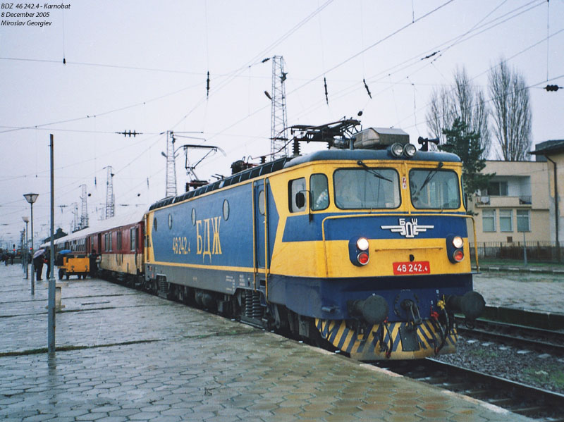 Locomotive 46 242.4 photographed on the rainy 8 December 2005 during its stop at Karnobat with fast train 3622 from Burgas to Sofia.