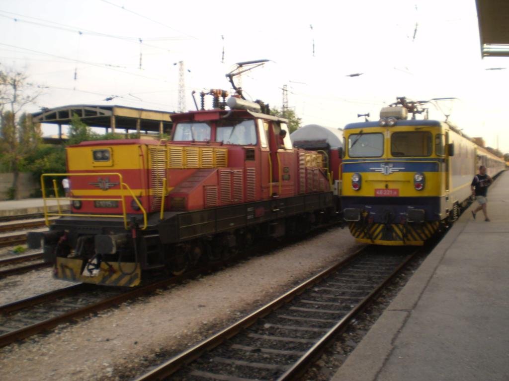 One to another on central railway station Plovdiv are standing 61015-4 , shutning with passenger cars and 44082-6 with Regional train to Sofia.