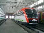 The new EMU DESIRO 30001-6+30002-4 on central railway station Plovdiv , using a local train from Sofia.