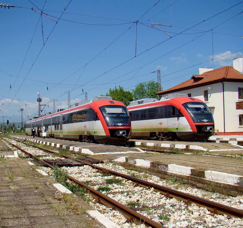 30021-4+30022-2 at railway station Yambol , using a morning Suburban train to Stara Zagora.