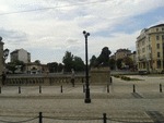 Sofia Metro station Lavov Most. August 2015. Above the station, the real "Lion's bridge", which is now only for pedestrians and the tramway. Only local car traffic is using the newly built roundabout, the through traffic uses two new underpasses on the river level. Photo by M.Koblischka |