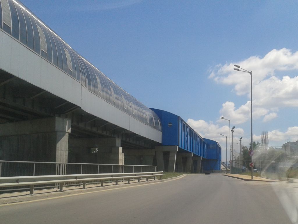 Sofia Metrostation Lomsko shose as seen from the road. July 2013. This is the high bridge crossing Lomsko shose, just before the station when coming from Obelya. Photo by M.Koblischka |