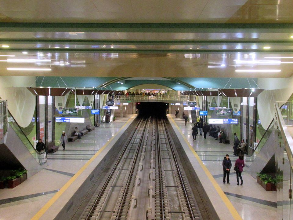 Sofia Metro station Vitosha. July 2016. View from the gates. In the middle are the metro tracks. Photo by M.Koblischka |