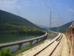 The frozen dam Conevo near to railway station Asparuhovo , railroad Sindel-Karnobat,05.02.2010.