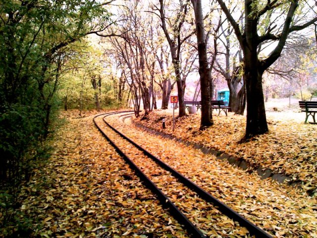 Autumn view of The children’s railway at city of Plovdiv. Although it brings some sadness at this season, the scenery looks great!