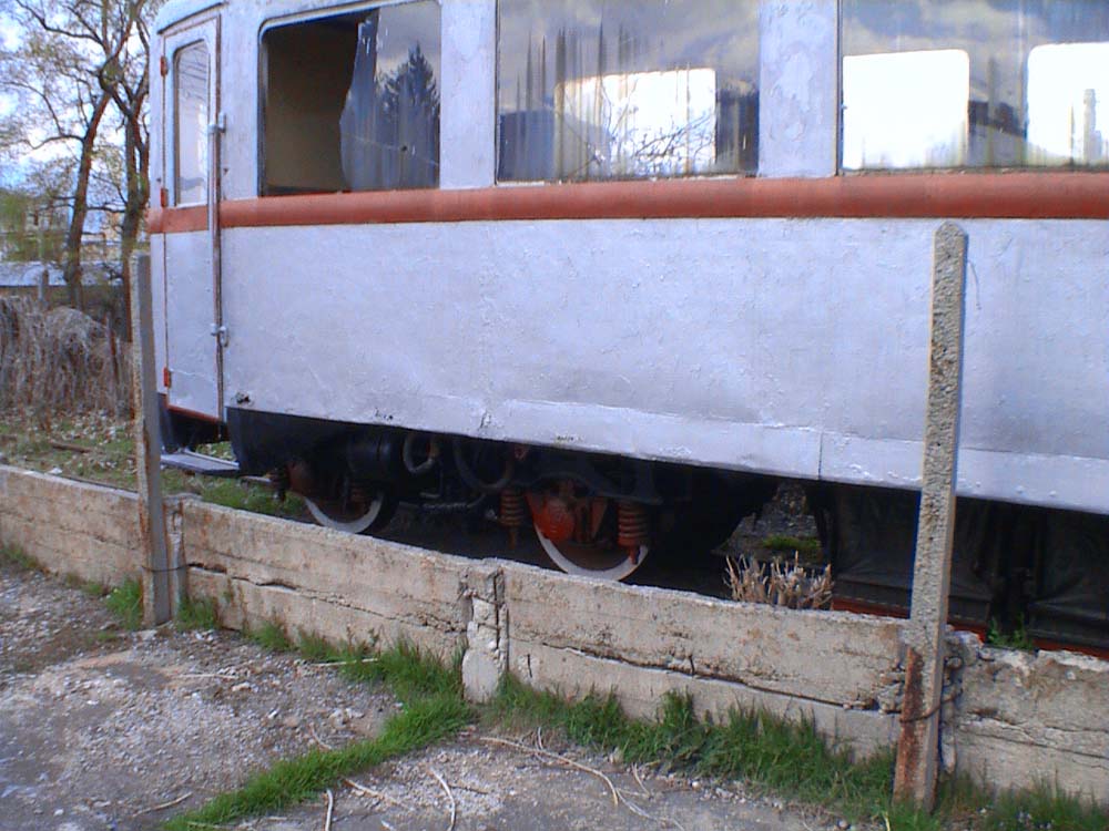 BDZ - Bulgaria Historic diesel motor car 82-01 is stored in the open air at Bansko on the Septemvri-Dobrinishte narrow gauge line. Although it was restored on the outside not so long ago, some windows had again been smashed. Bansko, 30-05-2007 Digital photo by Marco van Uden |